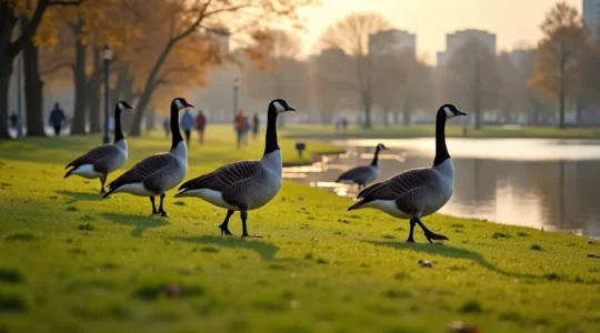Cette présence permanente transforme nos parcs, terrains de golf et berges en habitats secondaires où des colonies entières peuvent s’établir. Une seule bernache produit environ 1,5 kilogramme de fientes par jour, ce qui devient problématique lorsque des centaines d’individus fréquentent les mêmes espaces récréatifs. Les municipalités et les citoyens doivent alors composer avec ces nouveaux résidents permanents.